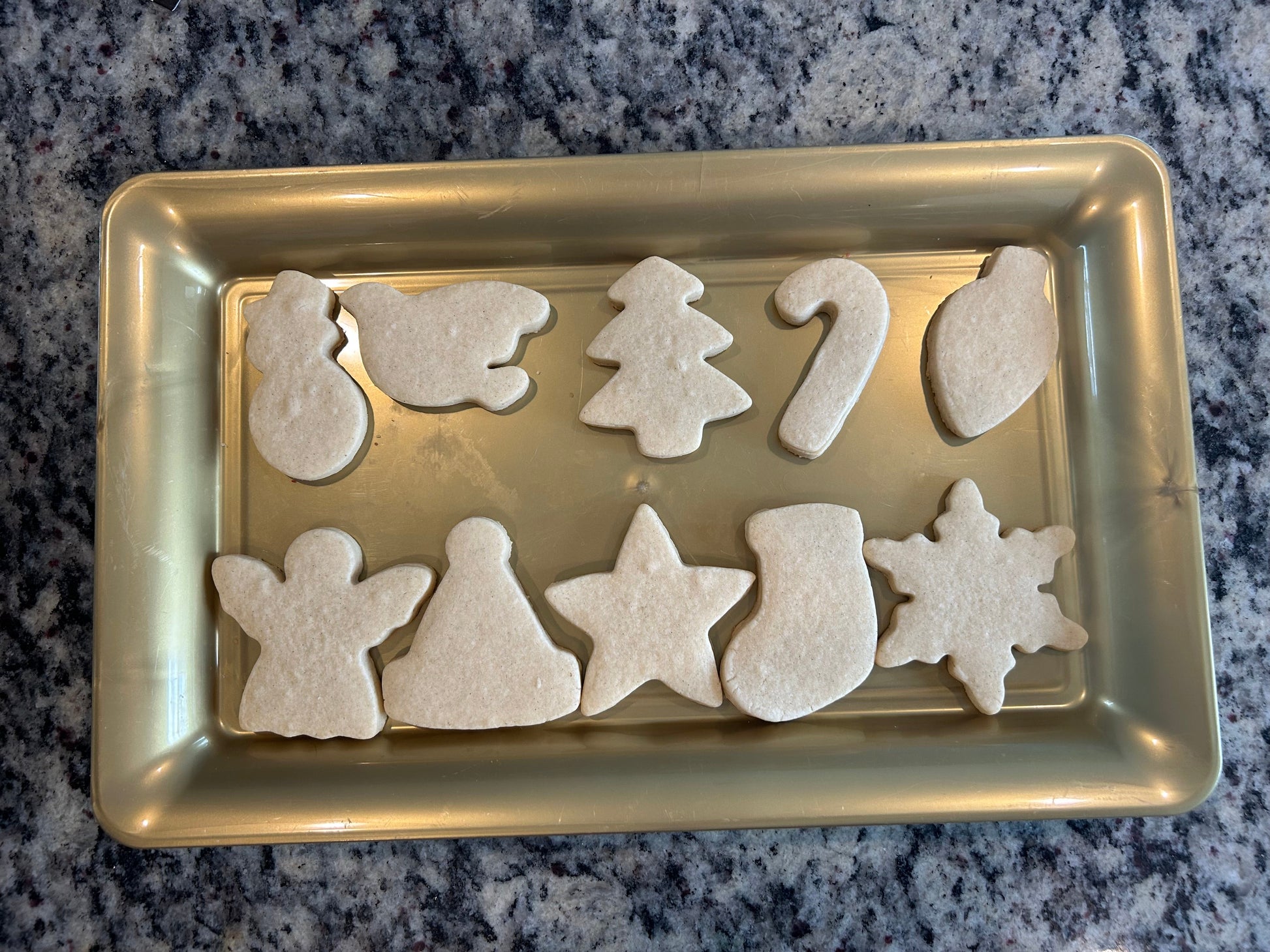5 Lg + 5 Sm plain sugar cookies in various holiday shapes